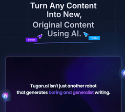 Tugan AI is a URL-based content transformation platform designed for entrepreneu...